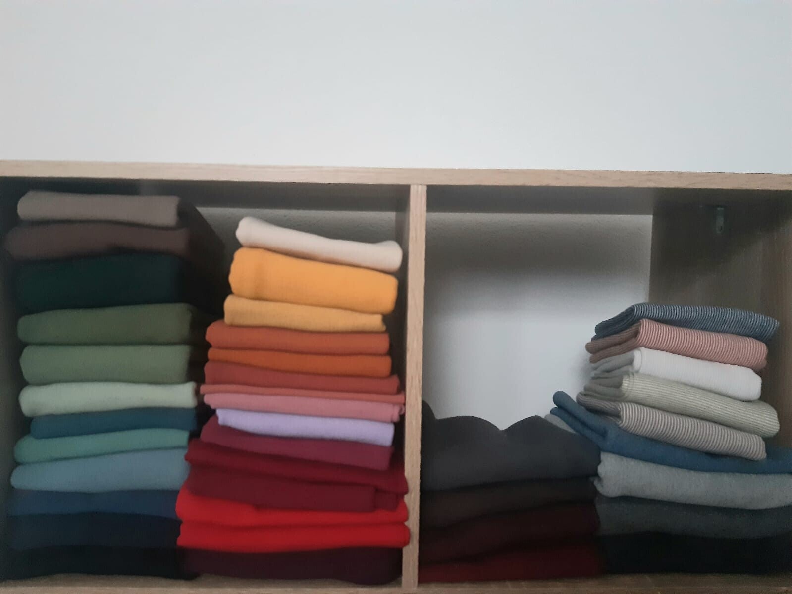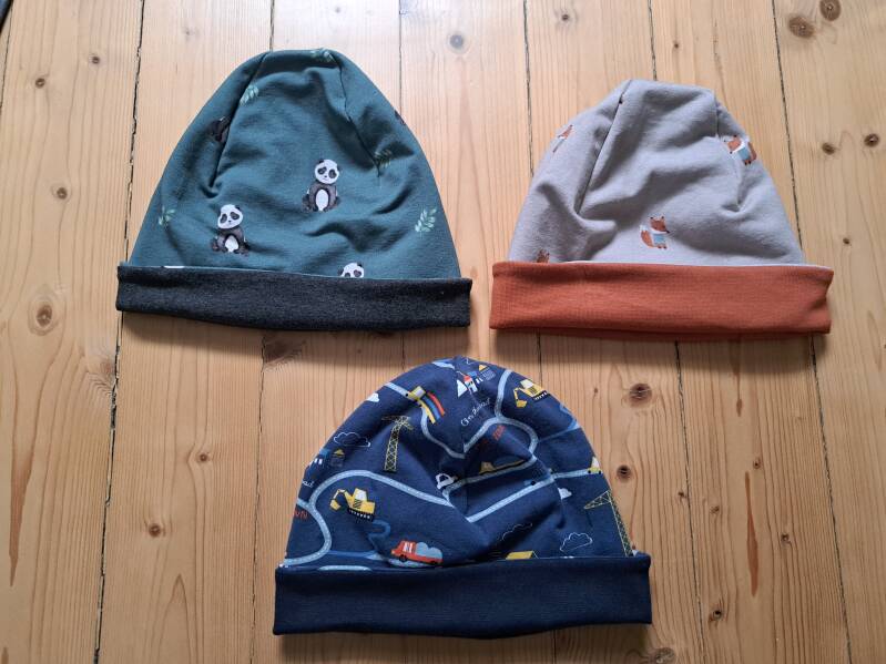 Die Beanies und der Schlauchschal bestehen aus zwei Stofflagen, einem Baumwolljersey und einem Baumwollstrick, French Terry oder Baumwolljersey. Die Mütze kann man nach Belieben beiseitig tragen . Die zweite Stofflage unterscheidet sich aufgrund der Dicke; Baumwoljersey ist dünn und eigent sich als leichte Kopfbedeckung im Frühjahr, French Terry ist etwas dicker und der Baumwollstrick hat eine gute Wärmeisolierung für Herbst / Winter.