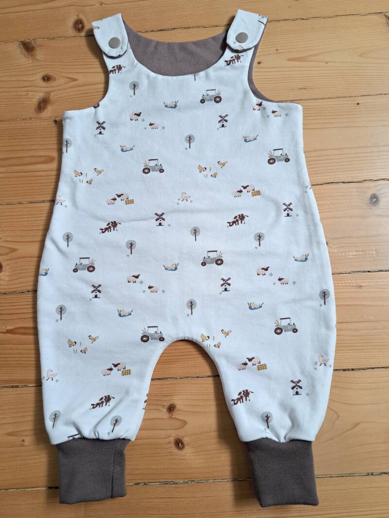 Baumwolljersey Stoff # 106 off-white Bauenhof mit Baumwolljersey Stoff # 135 uni hellbraun als Innenstoff und Bündchen